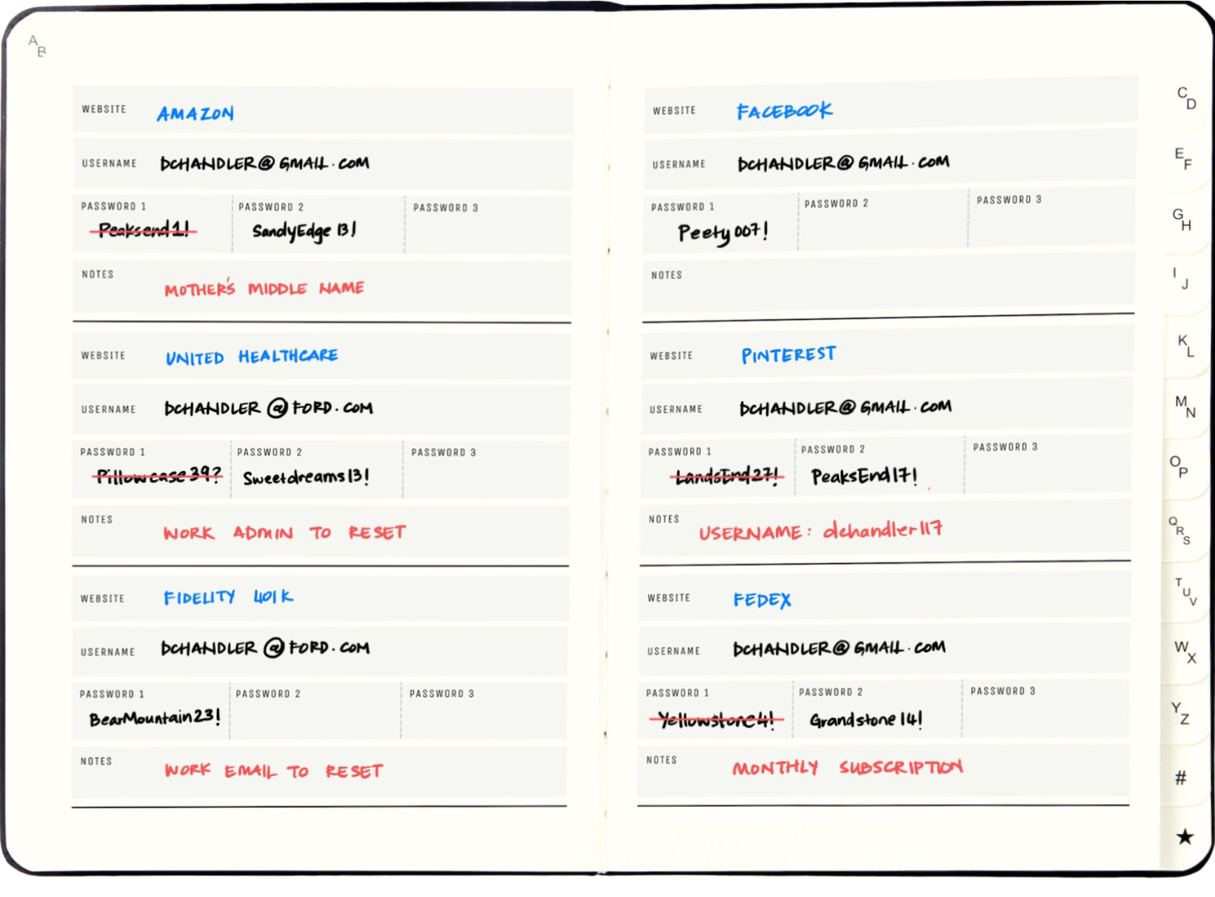 - This address and password book comes with A-Z alphabetical tabs that make it easy to record and find your passwords.